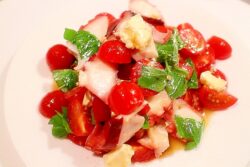 フランス料理 バジル香るサラダ♪チーズとタコのイタリアンサラダ