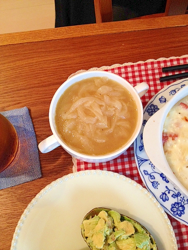 材料コレだけなのに、なぜこんなに美味しいのでしょう♡ 玉ねぎをたっぷり入れました! 自然の甘さがとっても美味しいです♫ お客様に出したら、好評でした(^O^)