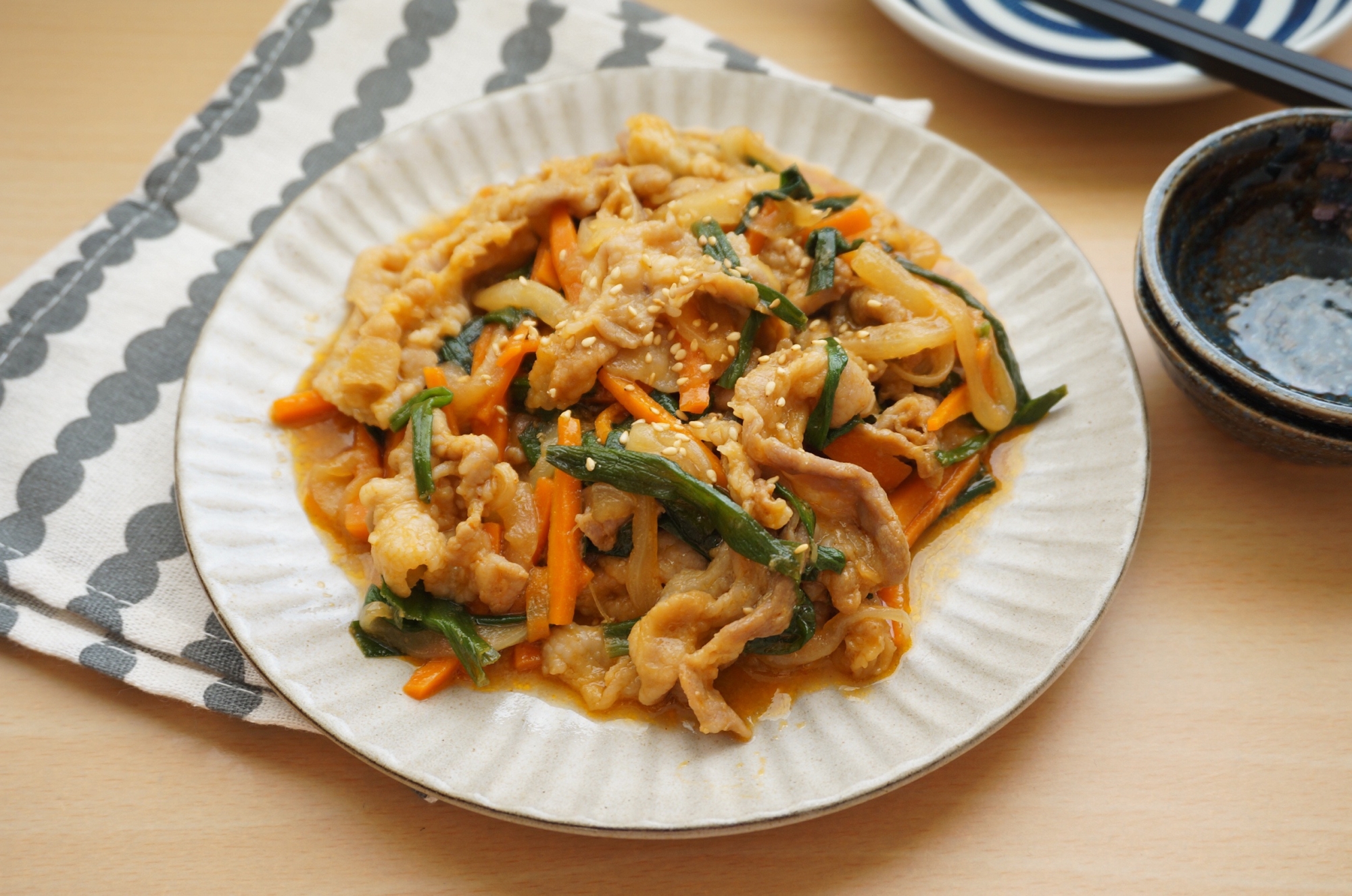 【下味冷凍で作り置き】豚肉でプルコギ風 韓国料理 X コピー 2021.11.27 大好評のプルコギ風♡ 下味冷凍しておくと当日の朝冷蔵庫にうつして夜ごはんのときは焼くだけ!包丁もまな板も不要で楽ですよ! レシピはこちら (楽天レシピ) 約15分 300円前後 材料 豚バラ肉(こま切れ肉)玉ねぎにんじんニラ★ニンニクチューブ★醤油、酒、ごま油、水★砂糖、コチュジャンお好みでゴマ みんなのレビュー