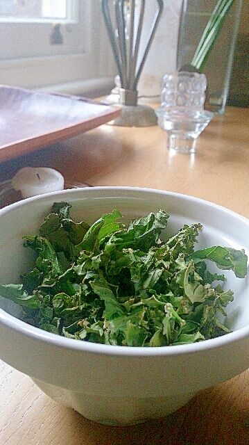 ケールのヘルシー、ごま油チップス。 野菜 X コピー 2022.06.24 ケールのチップスはイギリスでも人気ですが、私はオリエンタルにごま油で香ばしく作ってみました。ヘルシーなスナックの完成です。 レシピはこちら (楽天レシピ) 約15分 100円以下 材料 ケールごま油塩 みんなのレビュー